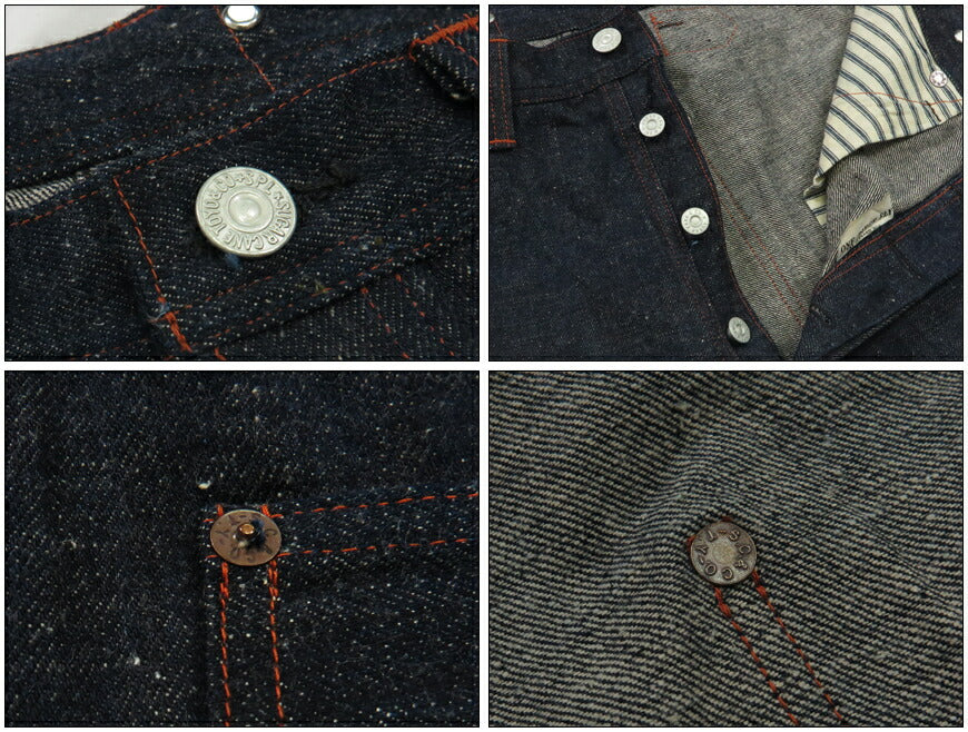 20世紀初頭をイメージし、13オンスの阿波藍混砂糖黍デニムで作製したオリジナルパンツ。 この年代の仕様は本来サスペンダーボタンのみでベルトループが付かないが、こちらには6本装備されており、 比翼部分は股が裂けにくいONEPIECE FLY仕様になっている。脇の縫製は巻縫い仕様のためセルビッジを確認できないが、 コインポケットの内部にセルビッジを使用している。 SUGAR CANE "FICTION ROMANCE" 実用性に基づくディテールや機能性を追求した縫製仕様など、ヴィンテージウェアにみられる色褪せない魅力。 史実や当時の資料を紐解き、失われたディテールを蘇らせ、それらをシュガーケーンが 独自に組み合わせることで生まれる虚構(Fiction)の物語(Romance)を具現化した作品群。 ![]() 長年に渡り、徹底したこだわりのボタンダウンウエアーを作り続けているSUGAR CANE(シュガーケーン)は、バズリクソンズ・サンサーフなどフライトジャケットやコレクタブルハワイアンシャツブランドを擁する、東洋エンタープライズ社のヴィンテージアメリカンカジュアルウエアーの老舗的ブランドです。 ![]()