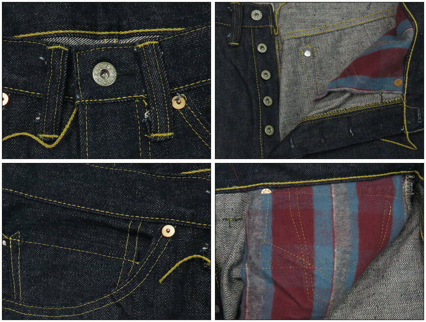 <モデル:身長175cm 体重62キログラム 30を着用> ![]() ![]() ![]() こちらのジーンズは片足のセルビッジが片倒しになって縫われてしまった当時のアクシデントをあえて再現しています。 当店での裾上げの際は、これを再現するか普通に仕上げるか、お好きな方をお選びいただけます。 商品と一緒に同封する裾上げ用紙にご希望の仕様をお選びいただく欄がございます。 サイズ詳細 サイズの計測方法についてはこちらをご覧ください。 ノンウォッシュの為、お洗濯をすると縮みが生じます。 素材 綿100% 13.5oz 生産国 日本 カラー ノンウォッシュ 備考 ※ 本作には防縮加工をしていない生機のデニム生地を使用しており、ノンウォッシュ(未洗い)の商品は洗濯後、 各部の寸法に縮みが生じます。またご家庭での洗濯や乾燥の方法により縮率に個体差が生じる場合もございます。 ※サイズは実寸を計測し平均値を記載しております。若干の個体差はございますので、ご了承ください。 商品に関して 当店の取り扱い商品はヴィンテージアイテムをベースとしたデザインの商品が多数ございます。雰囲気を重視するために若干の縫製のずれ、生地の色合いや加工による風合い、色ムラなど、仕上がりが異なる場合もございますが、それらも商品の魅力としてご理解下さい。また商品の仕様(縫製・パーツ・色合い・サイズ等)は予告なく変更される場合がございます。以上の点をご理解いただいた上でお楽しみいただければ幸いです。 |