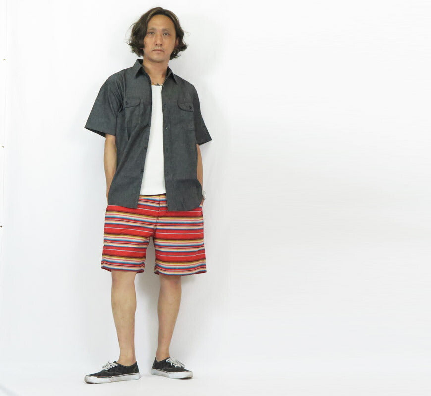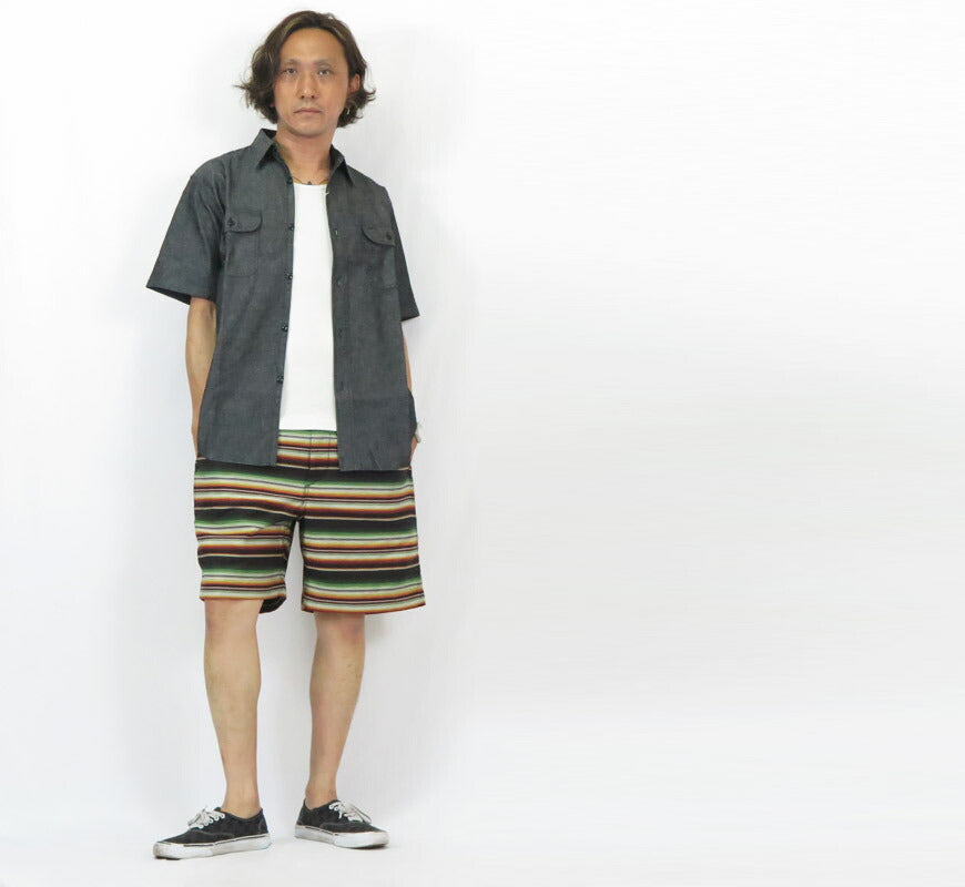![]() <モデル:身長175センチ 体重62キログラム Mを着用> メキシコの伝統的なラグの模様から着想を得たサラぺボーダー柄。 着古して退色した風合いも魅力。 丈はやや膝上あたりにくるスッキリとしたシルエット。 軽めの素材と鮮やかな色合いが相まって、真夏にピッタリな一着です。 同素材のシャツ(SC29464)も展開しています。 重量:310g ![]() 長年に渡り、徹底したこだわりのボタンダウンウエアーを作り続けているSUGAR CANE(シュガーケーン)は、バズリクソンズ・サンサーフなどフライトジャケットやコレクタブルハワイアンシャツブランドを擁する、東洋エンタープライズ社のヴィンテージアメリカンカジュアルウエアーの老舗的ブランドです。 ![]() ブラック ![]() ![]() レッド ![]() <モデル:身長175センチ 体重62キログラム Mを着用> ![]() <モデル:身長175センチ 体重62キログラム Mを着用>
