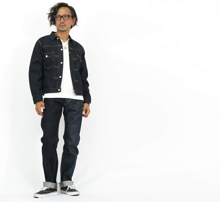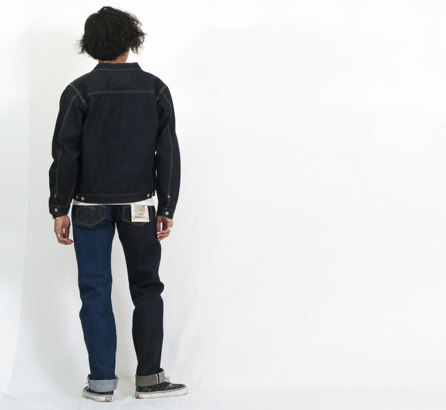 ![]() モデル:身長175cm 体重62kg 38を着用 定番ジーンズのSD-900番台シリーズと同じ、14ozの右綾、『G3』デニムで制作したデニムジャケットです。 デニムジャケットの中でも人気が高く、洗練されつつも無骨さが残る2ndタイプを採用。 より着やすくするために改良を重ね、できる限り忠実なディテールを追求し、 永く着ていただける、ジーンズと並ぶ定番と成り得る1着が完成しました。 オンス:14oz <G3デニム> もはや伝説として語り継がれていた日本最初機の力織機『G3』。 G3デニムはタテのテンションを緩くして織りあげる俗称『ダラシ織り』と呼ばれる織り方になります。 今の機械では表現出来ないムラ感やザラツキを職人さんの手作業での機械調節で行っています。 長年デニムに携わってきた熟練の職人だからこそ表現出来る、 当時のワークウエアとしての武骨で荒々しいデニムを表現したデニムになります。 ![]() 1979年創立したステュディオ・ダ・ルチザンの名には職人工房という意味が込められている。 当時の日本のジーンズマーケットには現在のビンテージレプリカと呼ばれるジーンズ作りの概念はほとんど存在しなかった。大量生産を目的とした効率化の影でジーンズ本体の味を再現する事に夢を追い求めるモノ作りの基盤を作り上げた草分け的ブランドです。 ![]()
