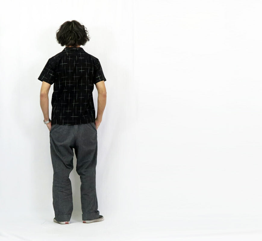 ■STUDIO D'ARTISAN 京黒紋付 染絣 格子 チェック柄 半袖 オープンカラーシャツ 5720【2025年春夏新作】