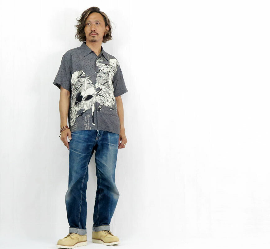■サンサーフ SUN SURF × 葛飾北斎 SPECIAL EDITION "画本武蔵鐙" 半袖 レーヨン ハワイアンシャツ日本の意匠 アロハシャツ SS39460