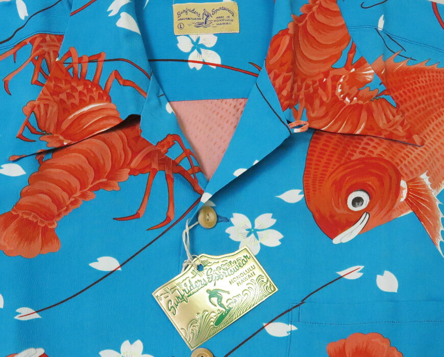 ■サンサーフ SUN SURF レーヨン壁縮緬 ハワイアンシャツ「SYMBOL OF GOOD LUCK」SURFRIDERS SPORTSWEAR スペシャルエディション SS39483