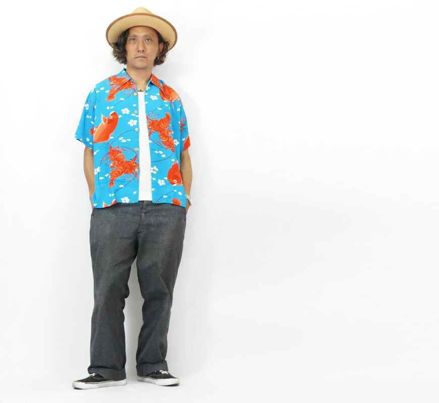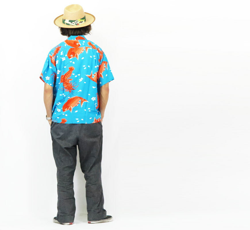 ![]() <モデル:身長175cm 体重62kg Lを着用> 日本からハワイへの正式な移民は、横浜駐在のハワイ領事ヴァン・リードが東京や神奈川に在住の 職人や農民たちから募った150人が最初となる。元年者(がんねんもの)と呼ばれた彼らは、 将来への希望と共にハワイへ渡るが、現地での生活は想像以上に厳しいものであった。 それ故、祖国日本に思いを馳せ、験(げん)を担いで縁起の良さにあやかる日本の古くからの風習は、 ハワイにおいても変わることなく継承されていった。それはアロハシャツの文化にも大きな影響を与え、 縁起物をモチーフとしたアロハシャツを好んで身につける流れが生まれていく。 この作品を手掛けたのは1940年頃、ワイキキのカラカウア・アベニューにギフトショップとして開店した「サーフライダース・スポーツウエア」。 元々はホノルルのダウンタウンでペナントやエンブレム、フラッグなどをオーダーメイドで作る「ソーイング・ショップ」から始まった。 その店でシャツやドレスも製作し、オリジナル・アイテムとしてワイキキのサーフライダース・スポーツウエアの店舗で観光客へ向けて販売。 また、当時のハワイのブランドとしては珍しく、メール・オーダーでかなりの数量を販売していた。 <SUN SURF SPECIAL EDITION とは> 楽園ハワイを象徴するアロハシャツ。その発祥には日系移民が深く関わっており、 トロピカルな柄だけでなく和柄もヴィンテージとして存在する。 ハワイが観光地として確立した20世紀半ばには、土産物としてのアロハシャツの需要が一気に増加。 デザインやパターンが多様化し、多くの作品が生まれた。ヴィンテージのアロハシャツを収集する過程で、 ごく稀に出会える特別な逸品。時代の流れとともに失われつつあるそれらの名作を生み出したテキスタイルデザイナーに 敬意を表し、多色の贅沢なプリントや迫力のデザイン、メーカーや年代によって異なる各部のディテールまで その魅力を余すところなく完全再現する。それがサンサーフのスペシャルエディション。 作品名: "SYMBOL OF GOOD LUCK" ヴィンテージ: SURFRIDERS SPORTSWEAR 年代: 1940年代後期 素材: レーヨン壁縮緬 プリント: オーバープリント デザインパターン: オリエンタルデザイン ●オーバープリント 淡い地色により強い色を重ねていく手法。抜染と比べて使える色数が多く、 境目の色が重なるためグラデーションが美しく見える。 和柄のような写実的な絵柄向きだ。 ●レーヨン壁縮緬 経糸にレーヨン無撚糸、緯糸にレーヨン壁糸を使った布地で、和柄に比較的多くみられる。 表面に凹凸がある素材で清涼感があるのが特徴。 元は和装用の布地として開発されたものである。 パッケージ含む総重量:540g ![]() サンサーフは、東洋エンタープライズのアロハシャツ専門ブランドです。サンサーフのアロハシャツは、すべてヴィンテージとしてかつて実在したデザインのものを当時の風合いそっくりにレプリカしています。他では真似できない膨大な量の社内コレクション、ノウハウがあって初めて可能となる製品造り。コレクターの方から、アロハを初めて着る方まで、幅広くオススメできるブランドです。 ![]() ![]() 125ブルー