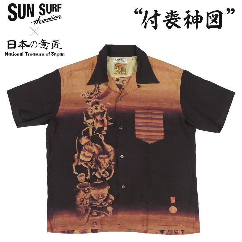 ■サンサーフ SUN SURF × 伊藤若冲 半袖 レーヨン ハワイアンシャツ 付喪神図 日本の意匠 スペシャルエディション SS39325