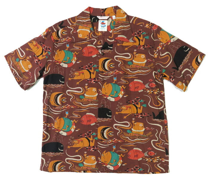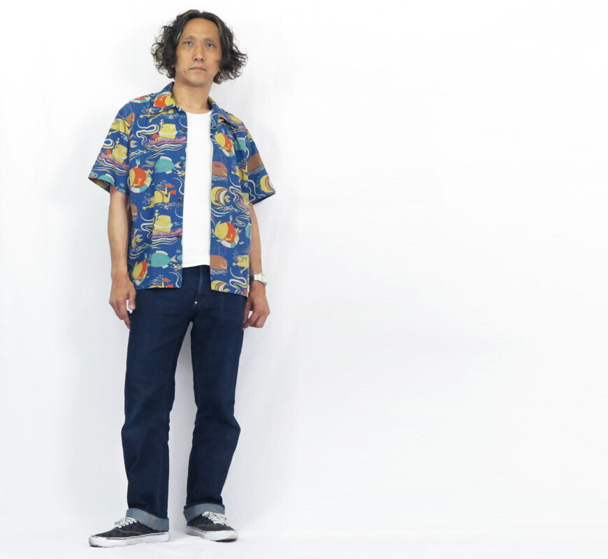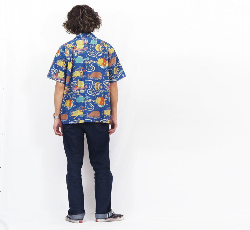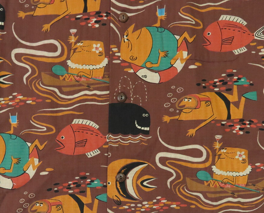 ■サンサーフ SUN SURF 半袖 ドビーコットン ハワイアンシャツ OCEAN ACTIVITIES by 柳原良平 with MOOKIE SS39538