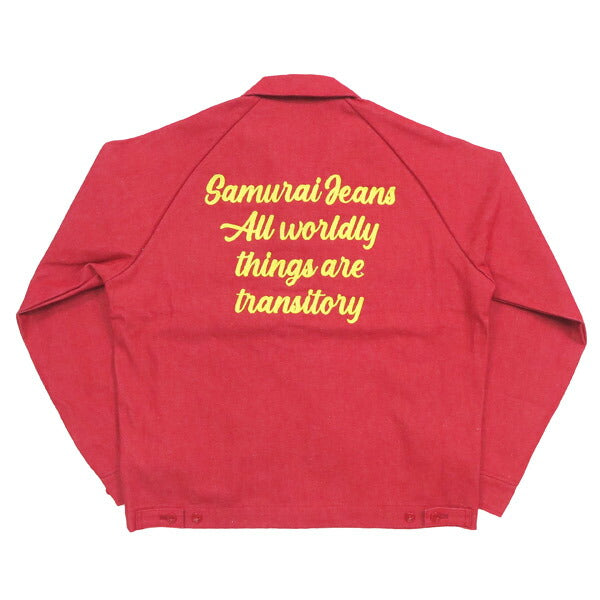 生地は赤デニムを使用。 刺繍は『Samurai Jeans All worldly things are transitory(サムライジーンズ諸行無常)』の言葉をチェーン刺繍で背中に大きく入れています。 生地の雰囲気も程良く長いシーズンで着用頂けます。 SPEC:赤デニム/Samurai WORK CLOTHESラベル/Samurai WORK CLOTHESネーム/樹脂ボタン/ワンウォッシュ 日本製 重量:810g ![]() 1998年に大阪で創業。「ジーンズは作り手、穿き手のこだわりが一致しないと商品価値が無い」をコンセプトに次々と革新的な商品を発表し続け、業界のリードしている。その名の通りサムライをモチーフにしたデザインが多く、その中でも20オンスを超える超極厚デニムはブランドの代名詞的存在となっている。
