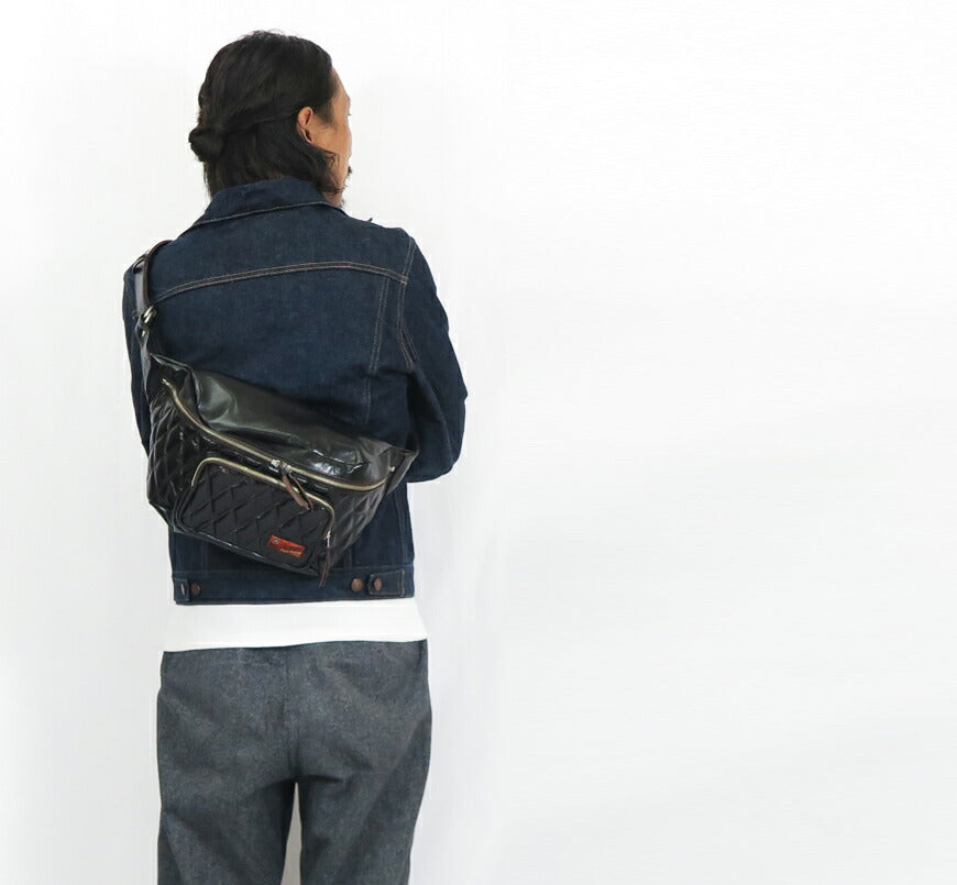 ![]() DUAL BLADE BAG MAX ウェストバッグ、袈裟懸けのボディバッグと2ウェイで使えるホース ハイド製レザーバッグ・デュアルブレードに大容量のMAXが新た にラインナップ。 体に当たる内側にキルティングパッドを設えることで、 長時間の装用でも疲れや痛みを感じさせないよう配慮。 容量も一泊ツーリングくらいは余裕で対応できる。 フロントパネル全面にダイヤモンド型キルティングパッドを施し、 ガジェット入れに最適な大型のファスナー付きポケットも装備、 メインの取出口もダブルファスナー仕様にアップデートした。 <サイズ>H18 x W35 x D10cm/フロントポケットH11cm x W19cm x D2.5cm <素材>馬革 ![]() 岡本博プロデュースの新ブランド 【トイズマッコイ】古き良き時代のアメリカ製品のリアルな造りを追求し、そのスタイルに自社のアレンジを加え、 ハイクオリティーな製品を送り出す。バイカーズアイテムを中心に、 本物のアメリカンカジュアル製品取り揃えています。 ![]() ブラック ![]()