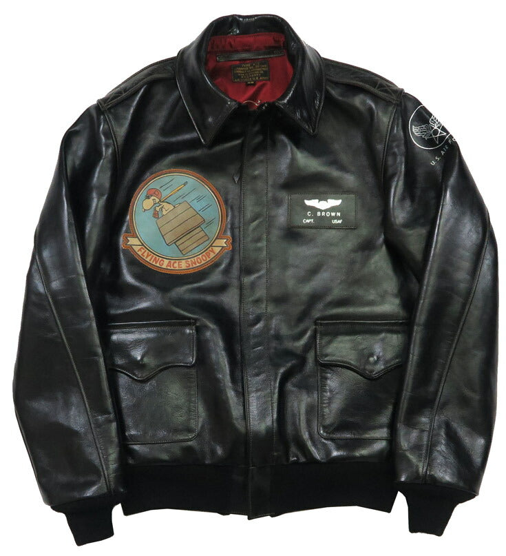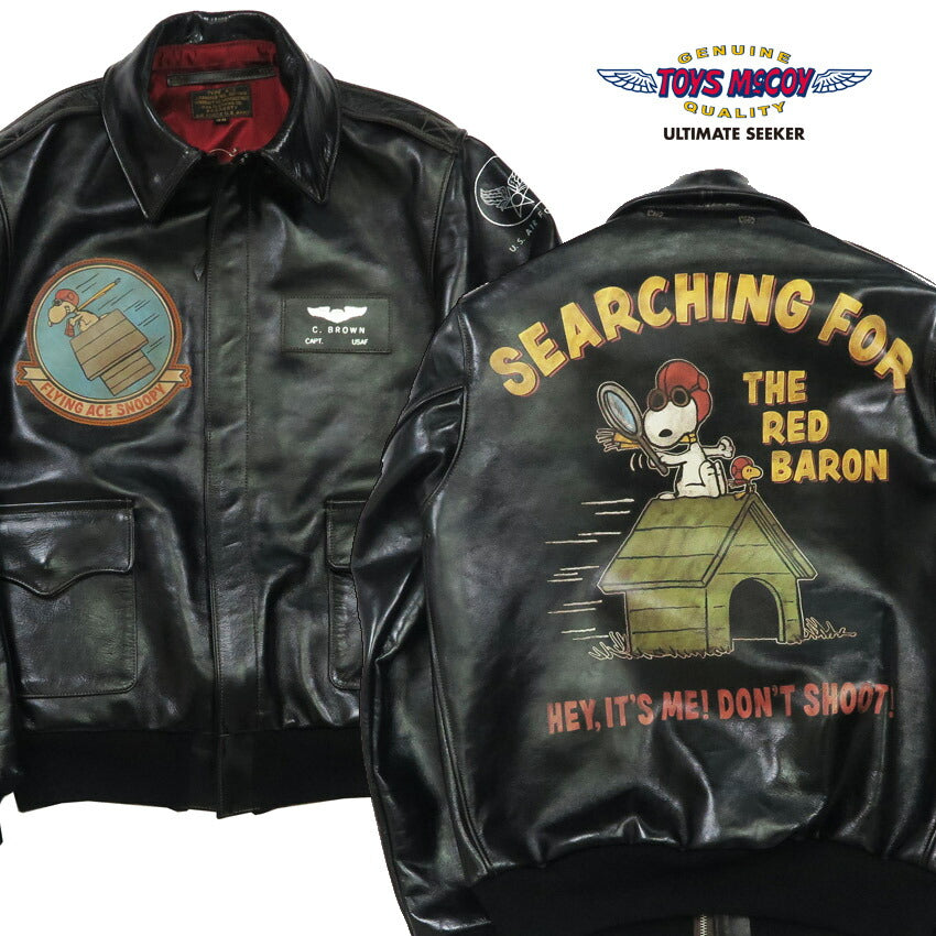 トイズマッコイ TOYS McCOY ブラック A-2 レザー フライトジャケット RWA CLOTHING CO. BLACK VER. RED LINING スヌーピー ハンドペイント SNOOPY SEARCHING FOR THE RED BARON ホースハイド 馬革 TMJ2502 【2025年春夏新作】