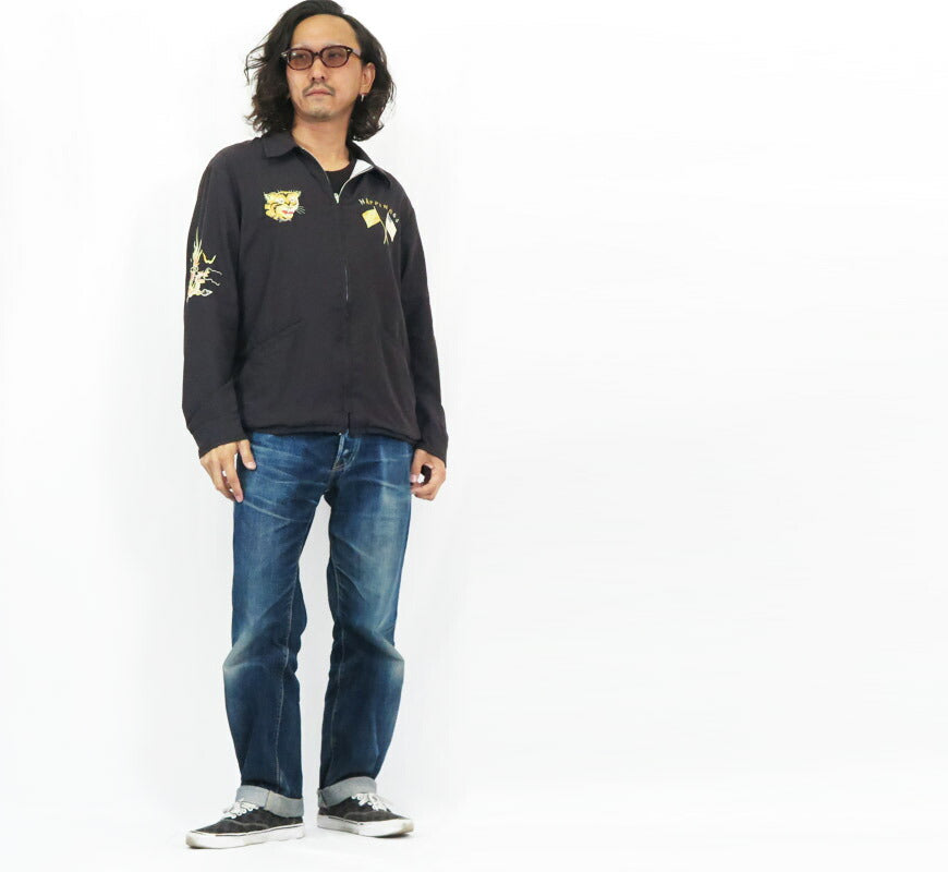 ![]() <モデル 身長175cm 体重62kg L着用> 1960年代中期にベトナムに駐留していた米兵がカスタムオーダーで仕立てたジャケット。 両袖の龍や右胸の虎はベトジャンの王道的なデザインだが、左胸は漢字の「福」ではなく珍しい2色使いの「HAPPINESS」表記。 その下には星条旗と南ベトナム軍のフラッグがクロスし、背中にはパラシュート部隊のモチーフが刺繍されている。 さらにこのエイジングモデルでは、経年変化により色味がフェードした生地や刺繍糸を再現。 レーヨン混のコットンツイルに加工を加えており、しなやかな生地感やドレープ感が特徴で、 新品時からヴィンテージさながらの風合いを楽しめる。 VIETNAM JACKET AGING MODEL テーラー東洋が2022年からリリースする新企画のエイジングモデル。 これまでアセテート生地のスカジャンでリリースしてきた 「褪色による濃淡のエイジング」ではなく、 ヴィンテージにみられる「素材感のエイジング」をテーマとしており、 着用と経年によって生地や刺繍糸が全体的にフェードしたマットな風合いをリアルに再現している。 重量:460g ![]() スカジャン誕生当時から米軍キャンプに納品していた老舗ブランド。 スカジャンのトップブランドとして常に業界をリードしています。 また、シュガーケーンやバズリクソンズなど完璧な出来栄えのアイテムを毎年沢山発表しています。 ![]() ![]()