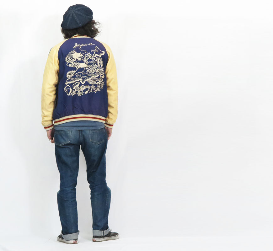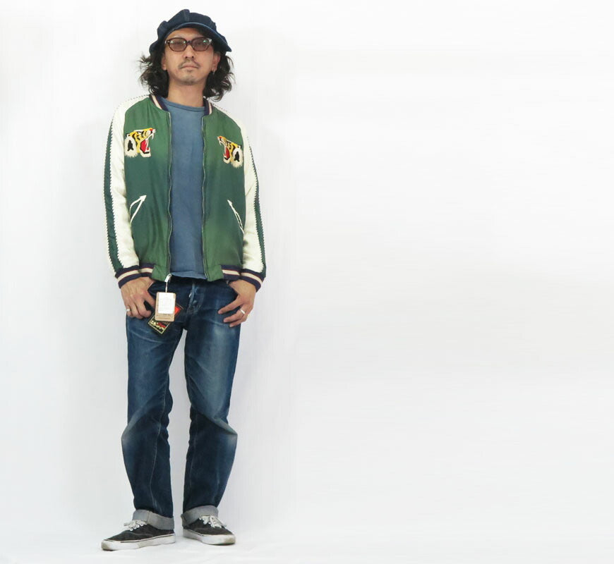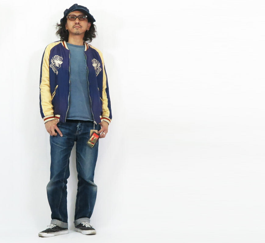 ![]() モデル:身長175cm 体重62kg Lを着用 迫力ある虎の顔を緻密に表現した「タイガーヘッド」と呼ばれる人気作のエイジングモデル。 ベースとしたのは1950年代初期の作品で、数あるスカジャンの中でも、胸も背中も虎のモチーフのみで構成された正統派のスタイル。 さらに加工を施すことでヴィンテージさながらの風合いを再現しており、スカジャン初心者から玄人まで納得の出来映え。 リバーシブル面はジャパンマップ柄。日本列島を守護する龍、富士山、桜の花々といった複数のモチーフで構成される豪華な絵柄だが、 色糸はオフホワイト単色でレーヨン糸の光沢や立体的な刺繍の陰影を駆使し、針足のみで描き出している。 褪色したネイビー×ゴールドのボディに合わせ、リブにベージュ、差し色として赤を配した統一感のある仕上がり。 1950年代前期作品 <ACETATE SOUVENIR JACKET AGING MODEL> アセテートから色の分子が抜け、程よく光沢が抑えられた深みのある生地感。 風合いを増したリブの質感。刺繍に用いられるレーヨン糸の褪色。これらのスカジャンの経年変化の魅力を再現し、 購入時からヴィンテージさながらの風合いを楽しむことができるのがテーラー東洋のエイジングモデル。 重量:690g ![]() スカジャン誕生当時から米軍キャンプに納品していた老舗ブランド。 スカジャンのトップブランドとして常に業界をリードしています。 また、シュガーケーンやバズリクソンズなど完璧な出来栄えのアイテムを毎年沢山発表しています。 ![]() ![]() ![]()