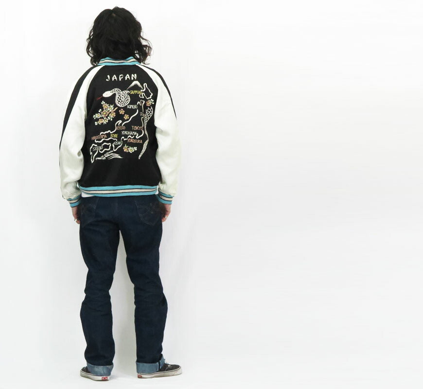 ■テーラー東洋 Tailor Toyo リバーシブル アセテート サテン スカジャン 港商 SPECIAL EDITION 60周年限定モデル WHITE SNAKE × JAPAN MAP SNAKE TT15712