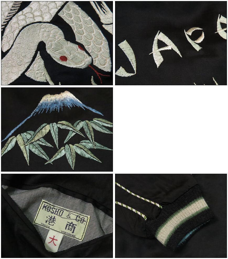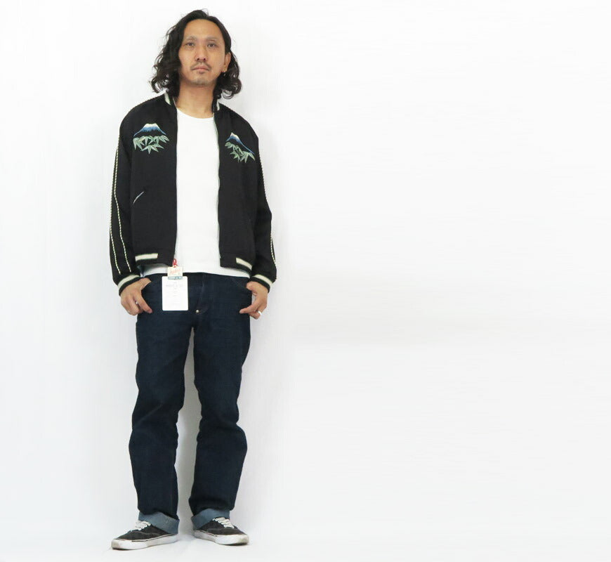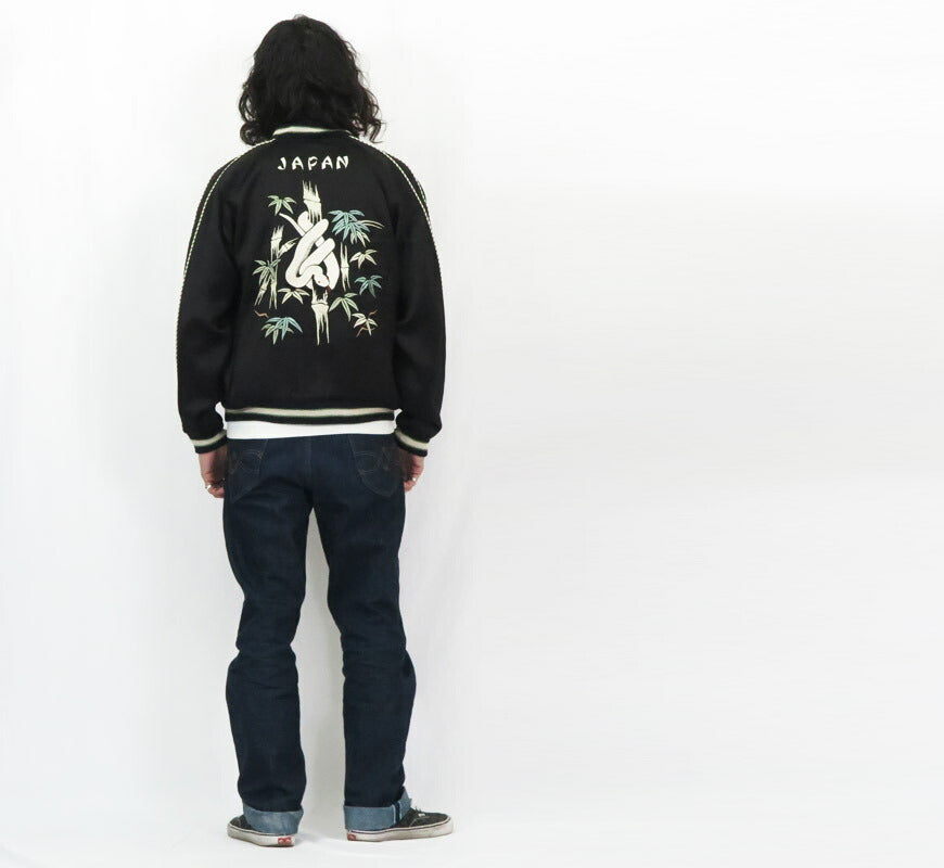 ![]() <モデル 身長175cm 体重62kg 大(L)着用> 2025年、巳年の干支であるヘビに因んだスペシャルエディション。 1965年に創業した東洋エンタープライズ社は60周年を迎え、自社のルーツともいえる「スカジャン」を題材に、 本作はヴィンテージの復刻ではなく、オリジナルデザインを刺繍で描き出している。 表面は夜の竹林に佇み、月に照らされ神々しく輝く白蛇の絵柄。ヘビの身体には2色、竹には別の色糸を使い、 ホワイト系の描写に3種類の刺繍糸を使い分ける凝った仕様。葉はグリーン2色のグラデーションで表現している。 淡い色糸で構成された刺繍の中でヘビの目と舌には鮮やかなレッドを使い、柄の中心に赤を差すことで白蛇の存在感を強調。 ボディは一見すると黒白のモノトーンだが、パイピングがグリーン×ホワイト、 リブにもグリーンのラインを入れ、刺繍の緑と併せて全体のバランスを整えている。 リバーシブル面は春をイメージし、咲き誇る桜に囲まれたジャパンマップ、そして日本を守るかのように巻き付く白蛇を描いている。 ヘビの鱗の描写に注目すると、表面では横振り刺繍を重ねることで陰影を表現していたが、裏面では刺繍を抜いて地色のブラックを活かし、 立体感を表現している。リブにはヴィンテージでも珍しいターコイズブルーのリブを採用。 長年培ってきたヴィンテージ復刻の経験に裏打ちされたオリジナリティあふれるデザインに仕上がっている。 <KOSHO CO. SPECIAL EDITION> テーラー東洋のコレクションの中でも特に厳選した逸品をディテールにこだわり再現するのが、このスペシャルエディション。 横振り刺繍で緻密に描かれた図案はもとより、アセテート生地の打ち込みを調整してヴィンテージと遜色なく仕上げ、 ウールリブも旧式の横編み機を使用して1着ずつ編み上げている。リバーシブル仕様のファスナーについても50年以上前の ファスニング機械を再稼働させ、当時と同じ手曲げのものを再現。テーラー東洋の前身である港商(こうしょう)商会のラベルを使い、 ヴィンテージスカジャンの最盛期を彷彿とさせる仕上がりとなっている。 重量:660g ![]() スカジャン誕生当時から米軍キャンプに納品していた老舗ブランド。 スカジャンのトップブランドとして常に業界をリードしています。 また、シュガーケーンやバズリクソンズなど完璧な出来栄えのアイテムを毎年沢山発表しています。 ![]()