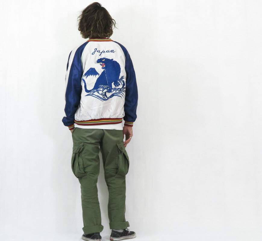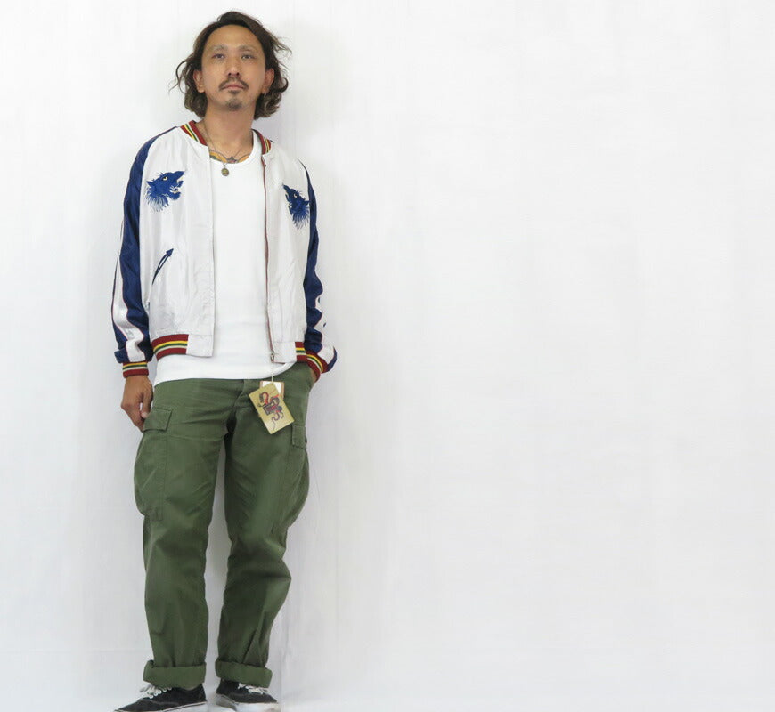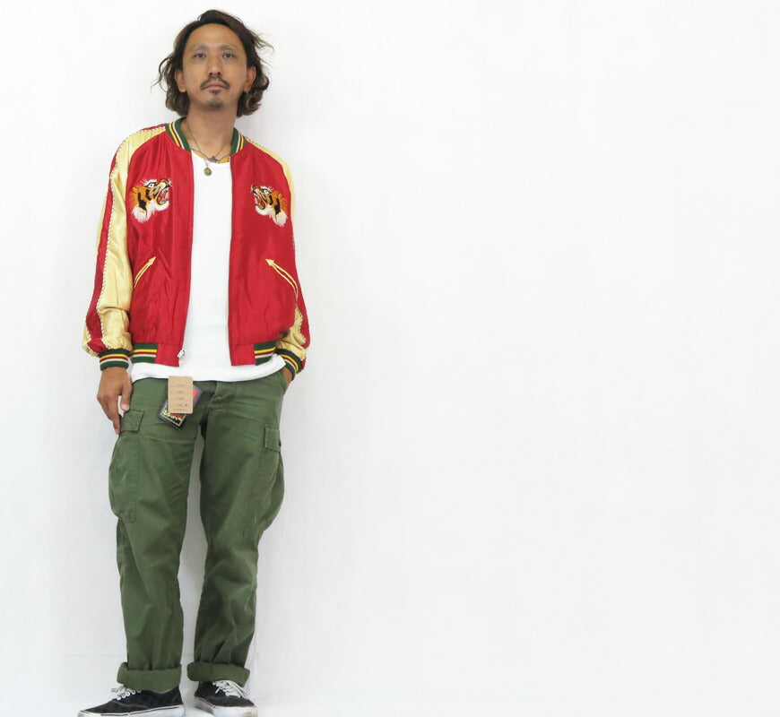 ![]() モデル:身長175cm 体重62kg XLを着用 テーラー東洋は前身の「港商」の時代からスカジャンを作り続け、 過去の製品がいまや「ヴィンテージ」として評価されている。 本作は、数多く寄せられたお客様からのリクエストにお応えし、 1990年代にテーラー東洋が手がけたスカジャンを約30年ぶりに現在の技術で再復刻。 ワインカラーのボディに映えるオレンジのグラデーションで描写された鷲の刺繍は秀逸で、 多色のリブが全体のバランスを引き締めている。 リバーシブル面は、身頃より袖下の色の方が濃いシルバー×ネイビーの「逆配色」ボディに、 猛々しく吼えるブルータイガーが映える。光沢のあるレーヨン糸の特徴を生かし、 針足を複雑に変えて刺繍を重ね、立体感と陰影によって単色でありながら虎の毛並みや 縞模様を表現。表面同様、4色のカラフルなリブがアクセントとなっている。 <ACETATE SOUVENIR JACKET> スーベニアジャケットのなかで最もスタンダードな両面にアセテート生地を使ったリバーシブルタイプ。 戦後当時のスカジャンには、シルクに似た高級感を持つ物資統制外品目のアセテートが使われていた。 中綿がないため季節を問わず着用でき、独特なドレープ感も魅力といえる。 重量:720g ![]() スカジャン誕生当時から米軍キャンプに納品していた老舗ブランド。 スカジャンのトップブランドとして常に業界をリードしています。 また、シュガーケーンやバズリクソンズなど完璧な出来栄えのアイテムを毎年沢山発表しています。 ![]()