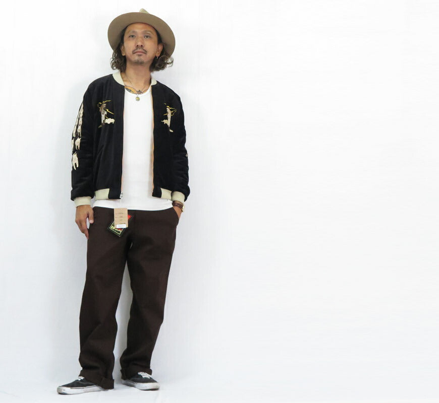 ![]() モデル:身長175cm 体重62kg Lを着用 アラスカをモチーフとした通称「アラスカジャン」。稲妻と白熊の柄が有名だが、この流氷と白熊の柄も実在するヴィンテージを再現。 ただでさえ希少なアラスカジャンのなかでもスーパーレアな一着と言えるだろう。 共に描かれているのは極寒の地でしか見ることのできないオーロラ。袖には人気の犬ぞりの刺繍も入っている。 リバーシブル面はアラスカのマップ柄。ブルーのALASKA の文字は、オレンジのボディとの組み合わせならではの配色。 1950 年代後期に米軍から依頼され「港商」が製作し、アラスカ米軍基地内のPXに並んだ作品で、 当時はアラスカの写真やポストカードをもとに職人が絵柄をデザインしていた。 <VELVETEEN SOUVENIR JACKET> 初期のスーベニアジャケットはアセテート生地のリバーシブル仕様が多いが、当時のバリエーションとして 毛羽感のある別珍(ベっちん)生地を使ったモデルも存在する。中綿を入れることで防寒性を高め、 リバーシブル面のアセテートには中綿を押さえるためのキルティングが施されていた。 重量:980g ![]() スカジャン誕生当時から米軍キャンプに納品していた老舗ブランド。 スカジャンのトップブランドとして常に業界をリードしています。 また、シュガーケーンやバズリクソンズなど完璧な出来栄えのアイテムを毎年沢山発表しています。 ![]() ![]() ![]()