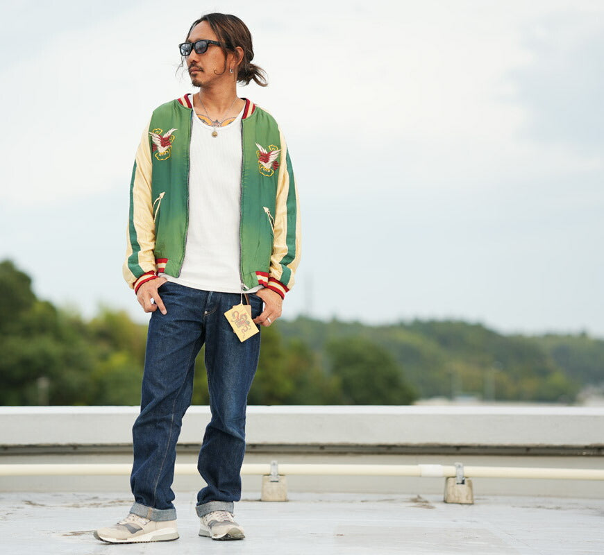 ![]() モデル:身長175cm 体重62kg XLを着用 ヴィンテージでは現存する数が極めて少なく、市場では耳を疑う金額で取引されている「髑髏柄」をエイジングモデルでリリース。 髑髏柄にはカラフルな色糸を駆使した作品も存在するが、1950 年代中期の本作は白を基調とした淡い色糸で全体がまとめられており、 したネイビーのボディとのコントラストが際立つ洗練された仕上がり。 リバーシブル面は龍の頭部を細部まで描写した通称「ドラゴンヘッド」と呼ばれる絵柄。淡いグリーンの龍の顔や朱色の炎などは、 当時の日本ならではの刺繍糸の色味。グリーンのボディに対して補色である刺繍の赤を馴染ませるため、 リブにも赤を配することで全体に統一感が生まれている。 1950年代中期作品 <ACETATE SOUVENIR JACKET AGING MODEL> アセテートから色の分子が抜け、程よく光沢が抑えられた深みのある生地感。 風合いを増したリブの質感。刺繍に用いられるレーヨン糸の褪色。これらのスカジャンの経年変化の魅力を再現し、 購入時からヴィンテージさながらの風合いを楽しむことができるのがテーラー東洋のエイジングモデル。 重量:690g ![]() スカジャン誕生当時から米軍キャンプに納品していた老舗ブランド。 スカジャンのトップブランドとして常に業界をリードしています。 また、シュガーケーンやバズリクソンズなど完璧な出来栄えのアイテムを毎年沢山発表しています。 ![]() ![]() ![]()