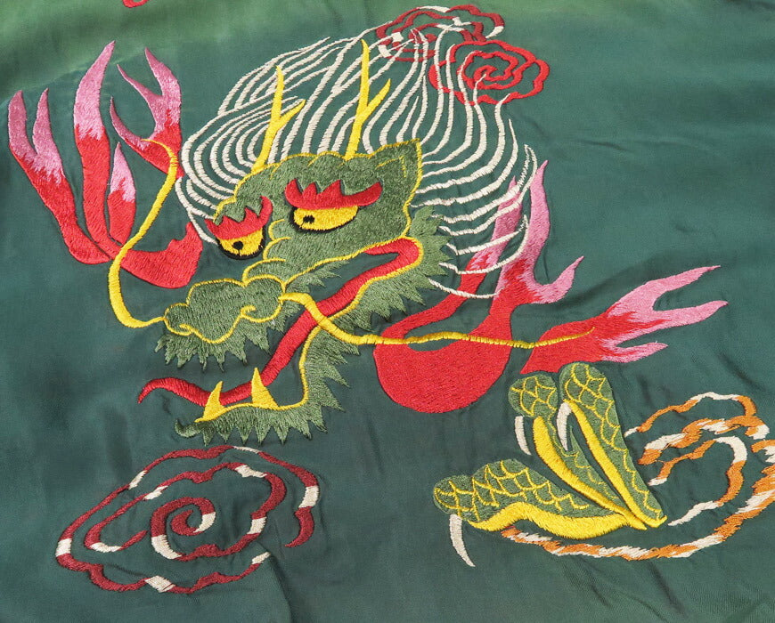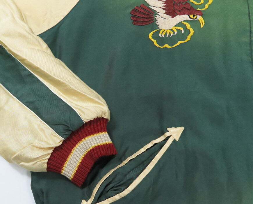 サイズ詳細 サイズの計測方法についてはこちらをご覧ください。 素材 表地:アセテート100% 裏地:アセテート100% 刺繍部分:レーヨン100% リブ:アクリル100% カラー 表面:ネイビー 裏面:グリーン 備考 デリケートな素材なのでお洗濯はクリーニング店にご相談下さい。 ヴィンテージの風合いを再現した緻密な刺繍の為、多少の糸飛びやホツレがございます。 商品の特性としてご理解下さい。 サイズは実寸を計測し平均値を記載しております。若干の個体差はございますので、ご了承ください。 商品に関して 当店の取り扱い商品はヴィンテージアイテムをベースとしたデザインの商品が多数ございます。雰囲気を重視するために若干の縫製のずれ、生地の色合いや加工による風合い、色ムラなど、仕上がりが異なる場合もございますが、それらも商品の魅力としてご理解下さい。また商品の仕様(縫製・パーツ・色合い・サイズ等)は予告なく変更される場合がございます。以上の点をご理解いただいた上でお楽しみいただければ幸いです。 |
