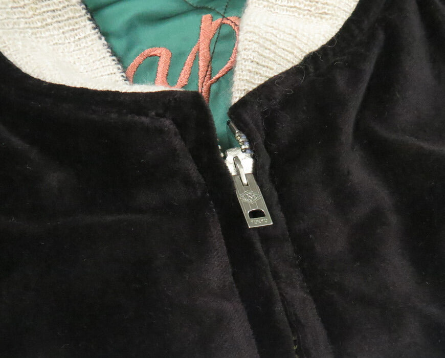 サイズの計測方法についてはこちらをご覧ください。 素材 表地:コットン100% 裏地:アセテート100% 中綿:コットン100% リブ:ウール100% 刺繍部分:レーヨン100% カラー ブラック 備考 ※この製品にほどこされています刺繍は旧式の刺繍手法を用いてビンテージ感を再現しています。 そのため、とてもデリケートで刺繍糸が引っかかりやすいので、お取り扱いにはご注意ください。 サイズは実寸を計測し平均値を記載しております。若干の個体差はございますので、ご了承ください。 商品に関して 当店の取り扱い商品はヴィンテージアイテムをベースとしたデザインの商品が多数ございます。雰囲気を重視するために若干の縫製のずれ、生地の色合いや加工による風合い、色ムラなど、仕上がりが異なる場合もございますが、それらも商品の魅力としてご理解下さい。また商品の仕様(縫製・パーツ・色合い・サイズ等)は予告なく変更される場合がございます。以上の点をご理解いただいた上でお楽しみいただければ幸いです。 |