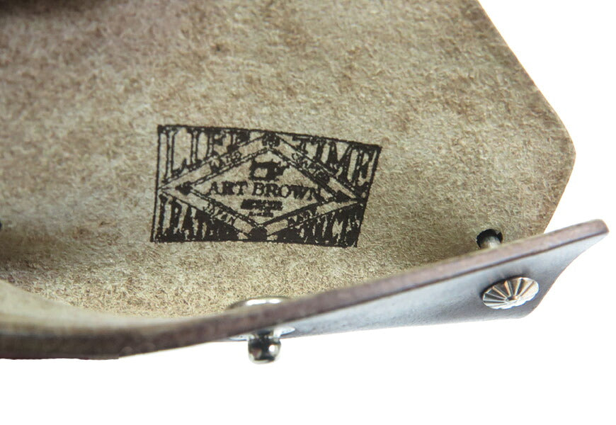 アメリカの老舗タンナー、ホーウィン社のクロムエクセルレザーは 伝統的な製法でクロムとタンニンの混合鞣し、オイルをたっぷりと含み しなやかでとても馴染みが早いのが特徴。 細かい傷がつきやすいものの、革用ブラシをかけたりオイルを入れるとすぐに目立たなくなります。 また丘染めとよばれ表面だけを染めているので使い込むうちに中の茶芯が見えてくるのも魅力。 シンプルなデザインながらもしっかりとした作りに、 厚手のレザーを使う事で堅牢でワイルドな雰囲気を持たせたキーホルダー。 初めて手に持った時に分かる厚革が放つ存在感は圧倒的です。 ハードに使用しても頑丈な革なので、 使えば使う程に革の表情が変わり経年変化を楽しむ事が出来るキーホルダーとなっています。 サイズ・商品詳細 金具含めた全長 縦:11cm×横:4cm 金具の数:2 重量:40g 【 無駄を省いたシンプルデザイン 】 キーホルダー全体のサイズをコンパクトにまとめ、 広げた時も大きすぎず手に馴染む大きさに設計され、 持ちやすさや使い勝手を考えながら、 一つ一つのパーツを丁寧にアートブラウンの職人が縫製し作り上げています。 カラー ブラック/BLK、チョコ/CHO ![]() 1974年、日本国内においてジーンズが徐々に定着しつつもジーンズに合うベルトが日本には無かった時代、 ジーンズに合う堅牢なベルトを作る工房としてアートブラウンは産声を上げました。創業当時からベルトを作る製法にこだわりハサミでは切れない程の厚さを持つ一枚革を使い、一つ一つ職人たちの手で作られるベルトをお届けしています。 ![]() ブラック ![]() チョコ ![]() ![]() ![]() ![]() 生産国 日本 カラー ブラック チョコ