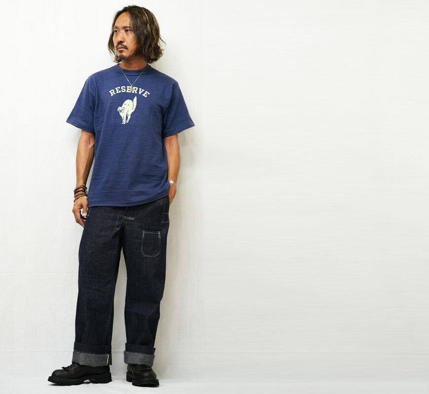 ![]() モデル:身長175cm 体重62kg XLを着用 「吊り編み機より希少」といわれる旧式のローゲージ編み機で編まれたウエアハウスの定番ボディです。 12番のムラ糸で独特の陰影が出るように編まれたこの生地はシャドウボーダーと呼ばれており、 無地でありながらうっすらと横段のようなムラが浮かびます。 極端に前下がりの現代的なネックラインではなく、フライスにパイピングを噛ませる事で強度を保ちながら 着込むほどにネックラインが緩み自然な前下がりが生じます。 ボディにはフロッキープリントが施されています。 このフロッキープリントは、柄に合せて糊成分をプリントし、静電気で繊維を垂直に乗せていく 昔ながらの手法を用いています。 経年変化で糊が硬化し、プリントがひび割れていくのが一番の魅力。 重量:200g ※洗濯により下記の縮みが生じます。 着丈-約1〜2cm 肩幅約1cm 身幅-約1〜2cm 袖丈-約1cm ![]() 1995年の創立以来、ファッションという流行に左右される業界に在りながら、決してそれに流されない、 「ヴィンテージ古着の忠実な復刻」というテーマを追い続けているブランドです。 縁あって出遭った一着のヴィンテージを、それが生産された時代の背景を考察し、 糸の一本から生地、縫製、そして洗い加工にいたるまで、徹底的に研究しています。 ![]() オフホワイト ![]() ネイビー ![]() ボルドー
